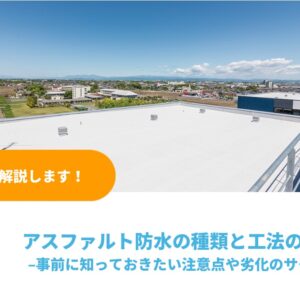 2023年11月1日 / 最終更新日時 : 2023年11月1日 admin-miraistyleinc 屋上防水 【よくある疑問】屋上防水工事は種類で耐用年数が変わるの? ビルやマンションなど、陸屋根の建物の屋上には新築時に雨漏りを防ぐ為、屋上の使用目的に合わせた防水工事が施されています。 防水業者が施工する屋上防水にはアスファルト防水・シート防水・塗膜防水という3つの種類の工事があります […]